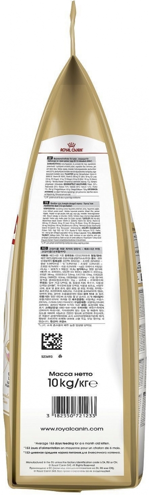 Дегидратированное мясо птицы, рис, животные жиры, кукуруза, изолят растительных белков*, гидролизат белков животного происхождения, растительная клетчатка, свекольный жом, дрожжи, рыбий жир, минеральные вещества, соевое масло, фруктоолигосахариды, оболочка и семена подорожника (0,5 %), гидролизат дрожжей (источник мaннановых олигосахаридов), масло огуречника аптечного, экстракт бархатцев прямостоячих (источник лютеина).