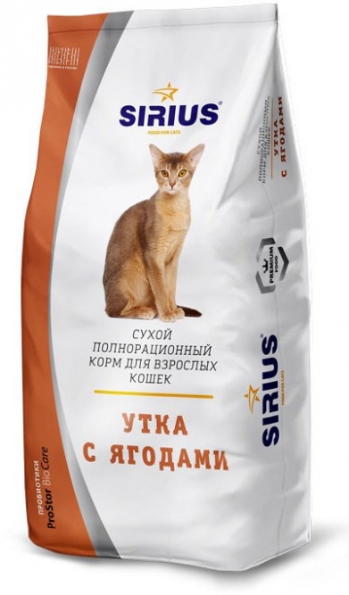Ингредиенты: гидролизованное мясо утки 12%, дегидрированное мясо птицы (индейка 10%, курица 10%), пшеница, жир куриный, рис, гидролизованные мясные белки, кукурузный глютен, горох, дрожжи пивные сухие, жир лососевый 1%, семена льна, пробиотический комплекс ProStor Bio Care (Bacillus subtillis, Bacillus licheniformis, автолизат пивных дрожжей, пектиновый комплекс, эхинацея, ромашка), таурин, клюква сушеная, ягоды брусники сушенные, плоды шиповника сушенные, смородина красная сушенная, метионин, Юкка Шидигера.